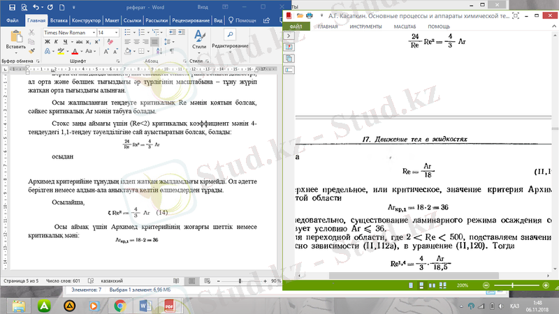 Ar>83000 - ға тең автомодельді аймақ үшін 17-теңдеуді 15-теңдеудегі l=0, -ті қойып, Re және Ar арасындағы тәуелділікті анықтаймыз.