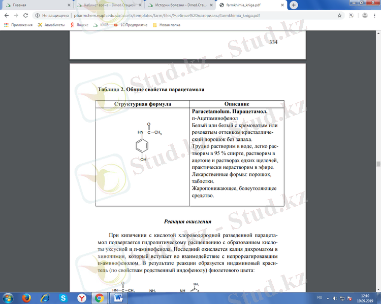 2-кесте. Парацетамолдың ортақ қасиеттері