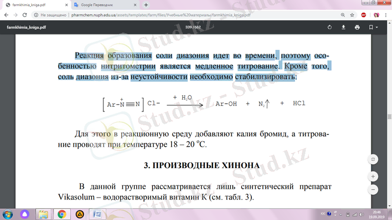 Содан кейін индикатор ретінде йод крахмал қағазын пайдаланып натрий нитритімен титрледі: