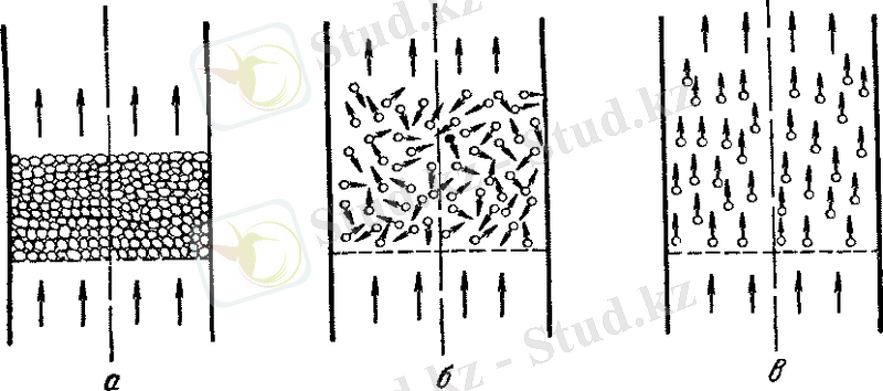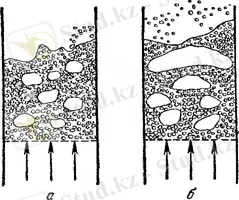 1-сурет. Газдың (сұйықтықтың) қатты бөлшектер қабаты арқылы қозғалысы.