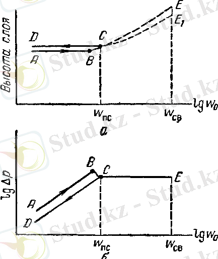 W 0 > W пс кезінде яғни K w >1, газ көмегімен немесе тамшылы сұйықтық арқылы жалған сұйылтқанда қайнаған қабат сипаттамасы әр түрлі болады.