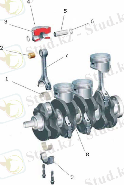 Қозғалтқыштың айналшақты-бұлғақты механизмінің құрылысы :