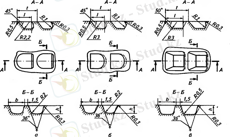 Сурет 4. Дискілі триердің ұшықтары: а-форма I, б-форма II, в-форма III