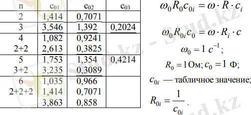 Баттерворт сүзгілерінің параметрлерін есептеу коэффициенттер кестесінің көмегімен жүзеге асырылады: