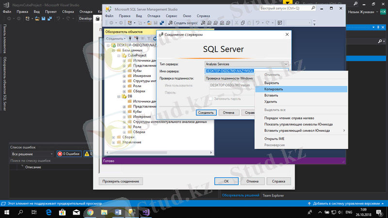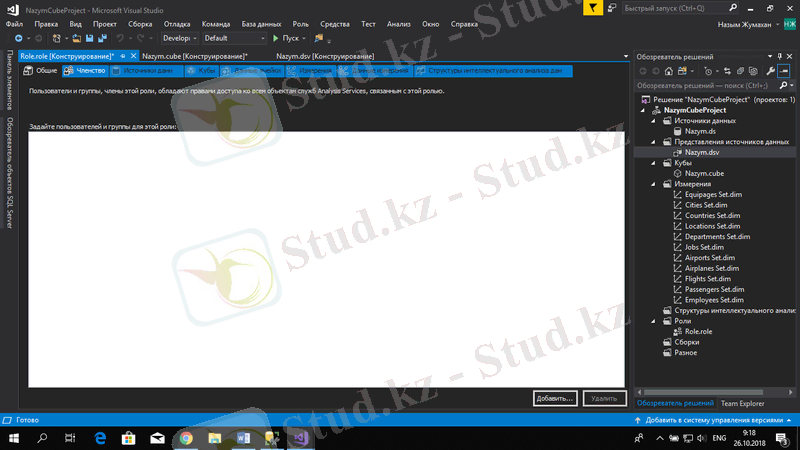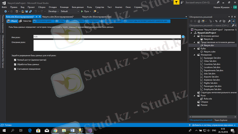 SSMS пен Visual Studio арқылы Microsoft SQL Server Analysis Services-та OLAP текшесін құру және басқару