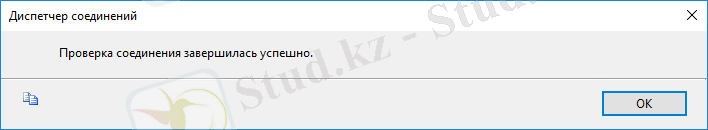 Деректер базасы бөлімінен керекті деректер қорын таңдап, Проверить соединение басып, серверге дұрыс қосылып тұрғандығын тексереміз. Серверге қосылып тұрса ОК басамыз.