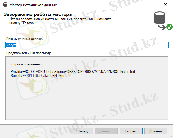 Сурет-2. 2. 11 Деректер көзін құруды аяқтау