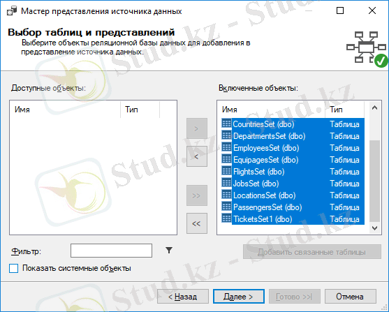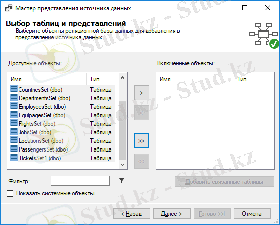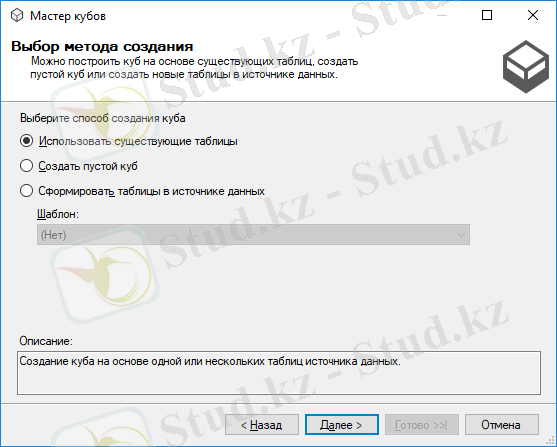 Ашылған терезеден Испоьзовать существующие таблицы таңдап, Далее басамыз.