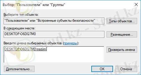 Ашылған терезеден қолданушы есептік жазбасын енгіземіз. Проверить имена басу арқылы қолданушы есептік жазбасын тексереміз. Дұрыс болса ОК басамыз.