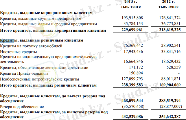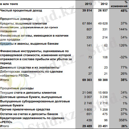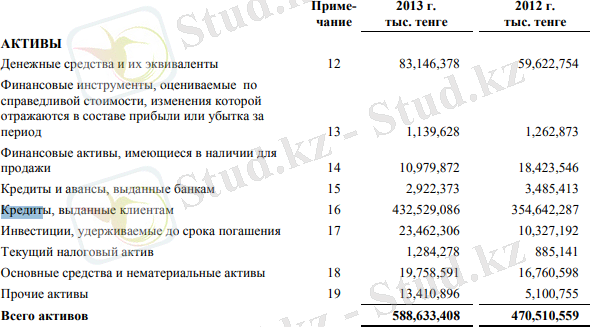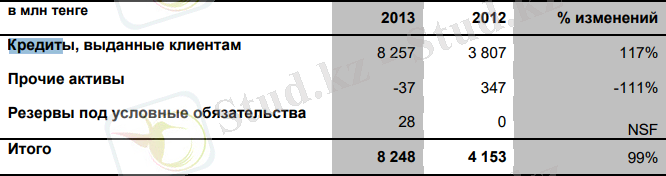2013 жылы несие портфелінің 22% өсуіне сәйкес құнсыздану резерві 23% -ға өсті.