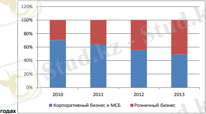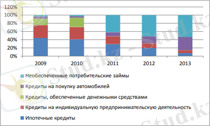 2010-2013 жж. Портфель бойынша бөлшек несиелердің үлесі (%) :