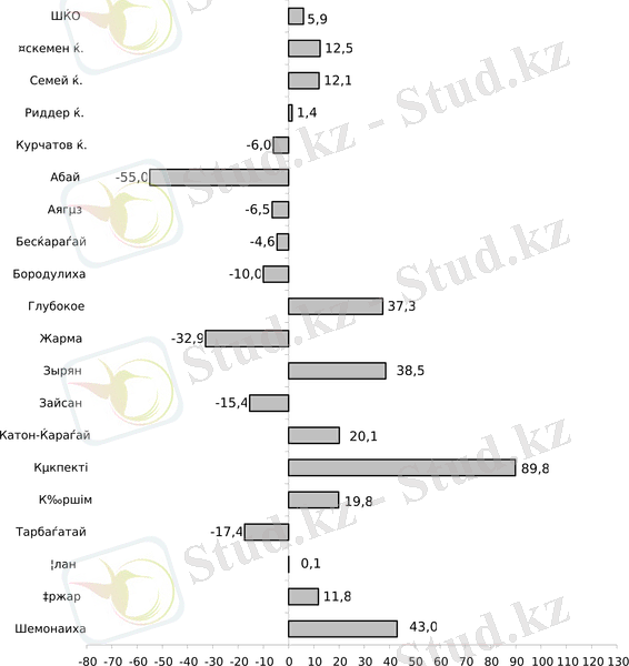 2005 жылдың қаңтар-тамызымен салыстырғанда 2006 жылғы қаңтар-тамызда өндіріс көлемінің өсуі Абай, Аягөз, Бородулиха, Бесқарағай, Жарма, Зайсан, Тарбағатай аудандарын және Курчатов қаласын қоспағанда облыстың 11 өңірінде байқалды.