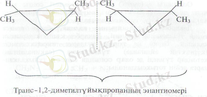 Оптикалық изомерия, ол тұйықалакандар үшін тән, оның молекуласында жазықтықтың симметриясы болмайды. Демек ол геометриялық изомериямен байланысты, яғни үзіліссіз байланыста болады. Мыслы, транс-1, 2-диметилтұйықпропан энантимерлердің жұбы түрінде болыды: