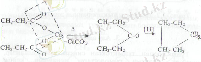 Дикарбон қышқылдарының калыций, барий немесе торий тұздарының пиролизі. Дикарбон қышқылдарының кальций, барий не торий тұздарын пиролиздегенде (құрғақтай айдағанда) тұйықталған (сақиналанған) кетондар түзіледі де олар соңында сәйкесті тұйықалакандарға дейін тотықсызданады: