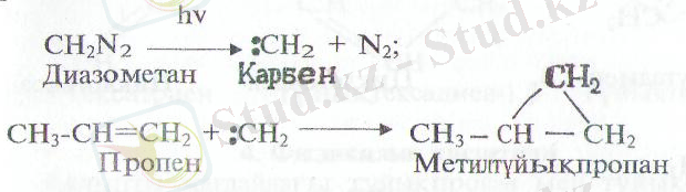Алкендердің карбендермен ([2+1] тұйықтала қосылуы) әрекеттесуі. Карбендер диазоалкандар немесе галогеналкандарды ыдыратқан кезде өнім ретінде түзілетін органикалық радикал. Карбендер алкендермен әрекеттескенде тұйықпропанның туындылары түзіледі: