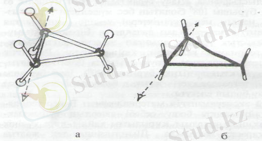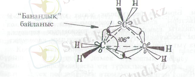 Көміртек-көміртек байланыстары электрондық бұлт-тарының өзара тебілісуі салдарынан үшмүшелік тұйықталғы көміртек атомдарының орбитальдарының қосатын түзу бойынша емес, молекула үшбұрышының сыртында орналасады, 11 сурет.