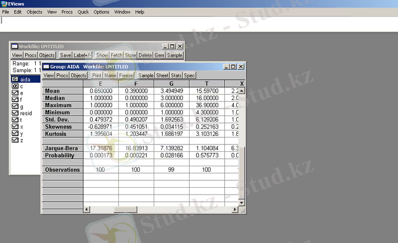 Әр айнымалының статистикалық мәндерін табу. (1-сур)