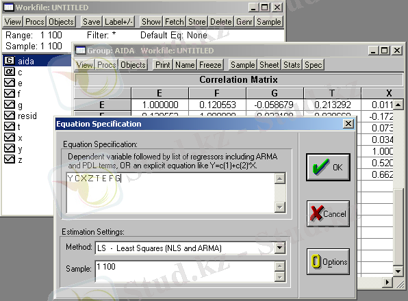 Пәтер бағасын болжауға арналған EViews-та көпфакторлы регрессияны құру, мультиколлинеарлық пен гетероскедастиканы тексеру және модель спецификациясын бағалау