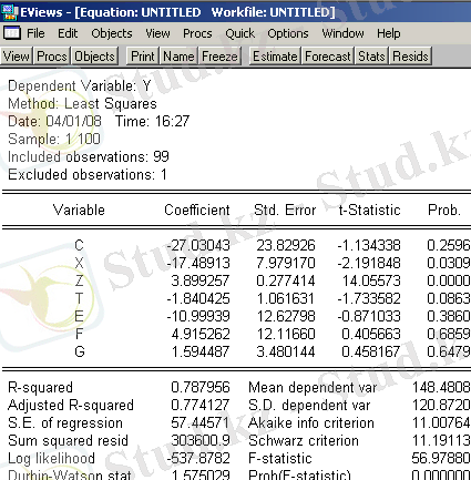 7. Алынған модельдің параметрлерінің статистикалық мәндерін бағалаңыз.