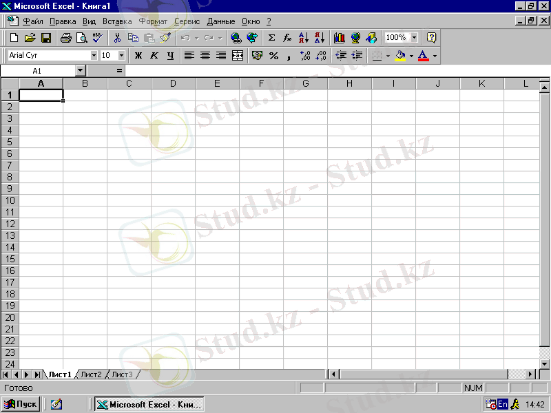 Excel-дің жалпы терезе (5. 1-сурет) түрімен танысалық. Терезе қажетті барлық стандарт элементтерден тұрады.