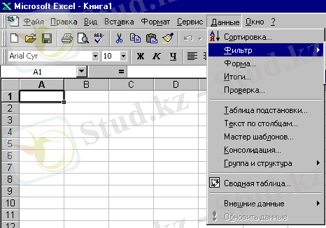 Word - тағы Кесте (Таблица) пунктінің орнына Excel-де Деректер (Данные) пункті қосылған. Бұл пункт кесте ұяшығының құрамындағы күрделі амалдарға арналған.