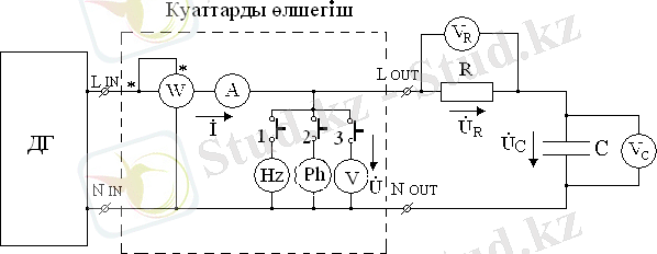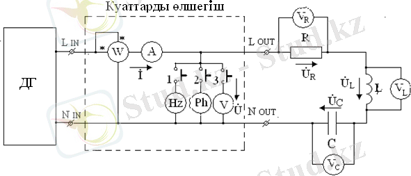 - 3. 1 суреттегі тізбекті жинап, нұсқаға сәйкес (3. 1 кесте) тізбек мәндерін орнату. Әрбір элементтегі токты және кернеуді, активті қуатты және қуаттың коэффициентін Cos φ өлшеу. Нәтижелерді 3. 2 кестеге енгізу
