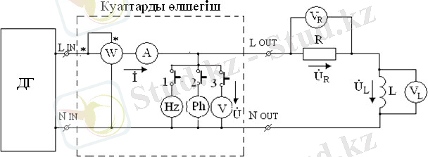 - Нұсқаға сәйкес (3. 3 сурет) тізбекті жинап, әрбiр элементтегi токты және кернеуді, активті қуатты және қуаттың коэффициентін Cos φ өлшеу. Нәтижелерін 3. 4 кестеге енгiзу.