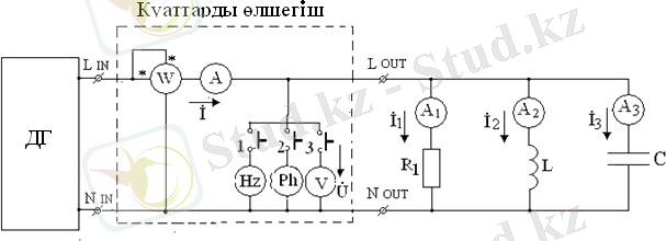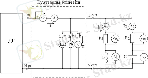- Әрбір тармақтағы токтарды және әрбір элементтегі кернеулерді, қуаттың коэффициентін Cos φ өлшеңіз. Нәтижелерін 4. 2-кестеге енгізіңіз.