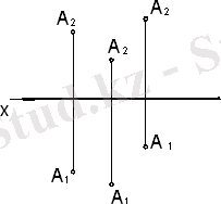 1 ) Берілген координаттары бойынша АВ түзуін проекция жазықтықтарына проекциялаңыз А (45; 60; 85) ; В (55; 65; 80) ;