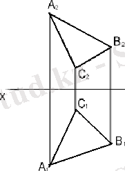 1) Проекциялау аппараты: S - проекциялау центрі және П - проекциялар жазықтығы белгілі. Берілген АВС үшбұрышының екі төбесінің проекциялары белгілі деп қарастырайық, оның центрлік проекциясың салуды аяқтау керек (2 сурет) .