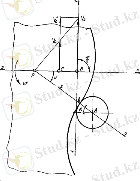 Мұнда жиекті тігіс орындалатын бұйымды бағдарлап қозғалту көлденең тігіс бағытымен қозғалатын инемен В, сурет 2, түзу сызық 1-1, өзгермейтін мөлшерге υ В және қос роликті қозғағыш С, υ С, өзгергіш шамаға қозғайды. Мұнда υ В < υ С /егер жиек қисығы ішке қарай бағытталса/, немесе υ В > υ С /егер жиек қисығы сыртқа қарай бағытталса/. Осы қозғалыс әдісі, бұйымды лездік айналу орталығы (ЛАО) Р арқылы бұрады, да жиекті 2- 2 нормалында, В, С нүктелері арқылы жүргізілген горизонталь 3-3 сызығына қатысты, α бұрышымен орналасқан тірегіш А апарып түйістіреді. Осы әдіс бойынша кез келген жиекті бұйым бір циклда міндетті түрде тірегішке түйіседі. Оны роликті тасымалдағыштың жетекші механизмде орналасқан солқылдақ құрылымның комегімен іске асырады. Бұл құрылым жиегтің қисықтығына қарай, жоғарыда көрсетілген қозғалыс шамасының υ В , υ С айырмашылығын қамтамасыз етеді. Демек оның жұмысына жиектің қисықтығы программа болады.