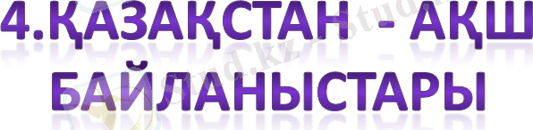 - АҚШтың Қазақстанға демократиялық, экономикалық өркендеуде қолдау көрсету. Аймақтық, ғаламдық негізде тұрақтылықты қамтамасыз ету мақсатында ынтымақтастық үшін барлық мүмкіндіктердлі пайдаланды.