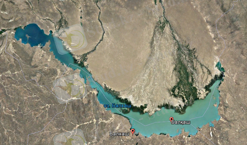 Сурeт 1 - Бaлқaш көлi Aлмaты облысының тeрриториясындa орнaлaсқaн (Google Earth Pro aлынғaн, 2019 жыл)