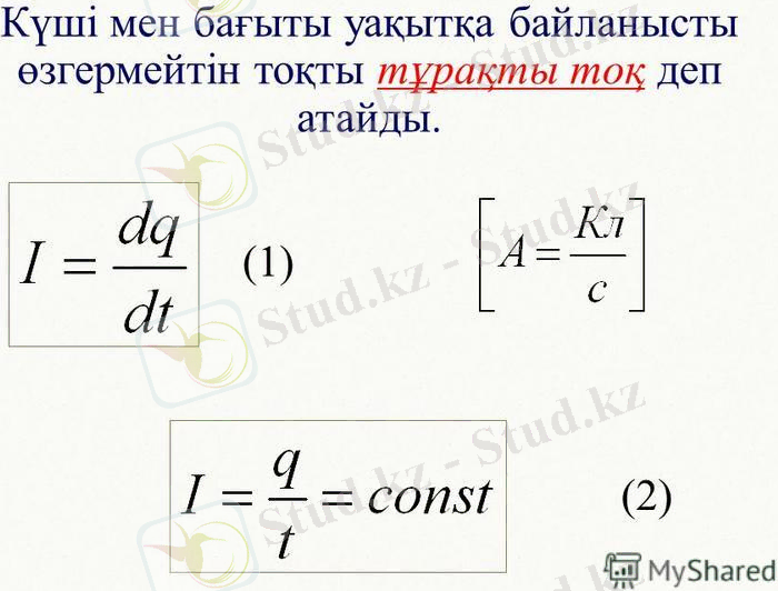 Элеткр тогы өткізгіштің кесе-көлденең қимасы арқылы белгілі уақыт бірлігінде өткен (кулонмен өлшенетін) электр мөлшерін анықтайды.