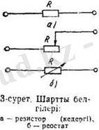 Электр кедергісі Қ (г) әрпімен белгіленеді. Схемаларда кедергілер 3а-суретте көрсетілгендей бейнеленеді. Электр тізбегіне қосылатын және кедергілері бар құрылғыларды резисторлар деп атайды.