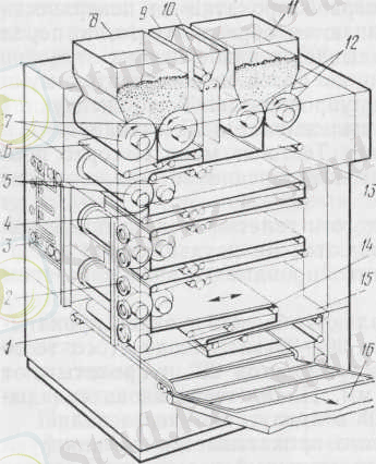 Ламинатор (29-сурет) бірнеше жұп тегіс немесе гофрленген роллерден тұрады және реттелетін құрылғылар мен басқару құрылғыларымен жабдықталған жалпы төсекке орнатылған транспортерлер жүйесі.