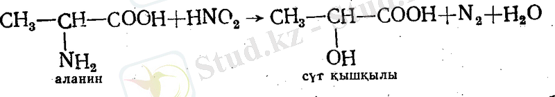 Амин қышқылдарын диазоттағанда, азот бөлініп шығып, оксиқышқылдар түзіледі:
