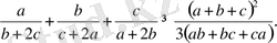 Шешуі: Берілген теңсіздіктің оң жаңын түрлендіріп, оған Коши-Буняковский теңсіздігін қолдану арқылы теңсіздікті дәлелдейміз: