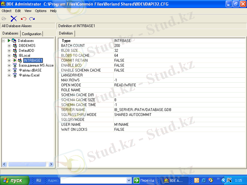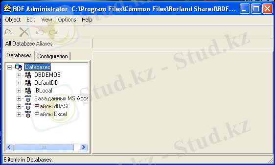 - BDE Administrator бағдарламасын мәзірден Object/Exit командасын таңдап жабамыз.