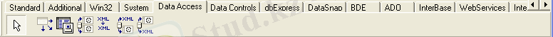 Компоненттер палитрасындағы барлық компоненттер тақырып бойынша беттерге бөлінген . Бұл беттердің кейбіреуінде мәліметтер қорымен жұмыс істеуге арналған компоненттер орналастырылған.