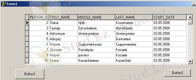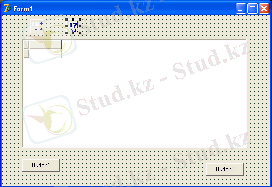 Data Controls-қа көшіңіз және формаға DBGrid компонентін орнатамыз. Одан басқа, Standard бетінен екі перне (Button) қосамыз.
