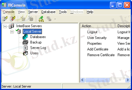 1-сурет . InterBase Server Manager бадарламасының терзесі»