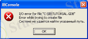 IBConsole бағдарламасы мәліметтер қорының тек файлын құрады, ал мәліметтер қорында құрылатын каталог қатты дискте болуы керек. Мысалы, бұл жағдайда d: дискісінде ib папкасы болуы керек, егер жоқ болған жағдайда мәліметтер қоры құрылмайды, экранға қате хабарламасы шығады(8-сурет) .