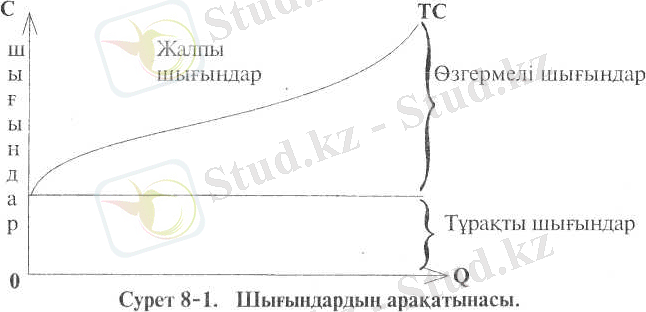 Түракты және өзгермелі шығындар сомасы өндірістің жалпы шығынын күрайды (ТС) .