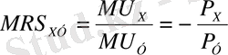 Теңдестік жағдайында алмастырудың шекті нормасы MRSxy пен бюджет сызығының бұрыштық коэффициенттері тең болады. Сондықтан тұтынушы өзінің теңдестік жағдайына қол жеткізуі үшін X және Ү тауарларының көлемін келесі шарт орындалатындай етіп таңдауы қажет.