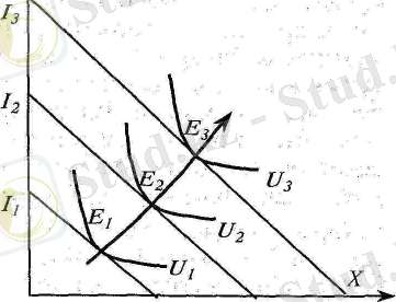 Егер тұтынушының табысы көбейе түссе, онда оның бюджет сызығы бастапқы сызыққа параллель түрде өседі, ал теңдестік нүктесіне, Е2, Е3) тұтынушының ұтымды таңдаулары сәйкес келеді, Егер осы жағдайды жазықтықта бейнелейтін болсақ, онда біз тұтынушылардың теңдестік жағдайын бейнелейтін нүктелердің тізбегін аламыз. Осы нүктелерді бір-бірімен қоссақ, онда табыстың өсуіне байланысты 4. 9-суретте көрсетілгендей «табыс-тұтыну» қисығы шығады. Бұл қисықты кейде «тұрмыстық деңгейін көрсететін қисық деп те атайды.