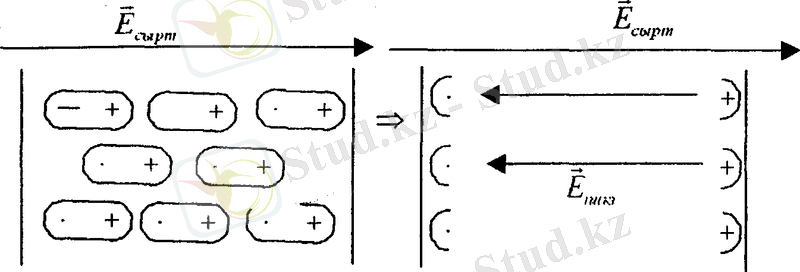 Бірақ өткізгіштегідей емес, полярланған диэлектрикте беттік зарядтардан пайда болтан ішкі өріс сыртқы өрісті толық өтемелей алмайды