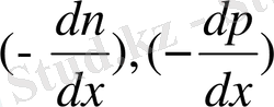 деген мүшелердің алдындағы минус таңбалары диффузия кезінде заряд тасымалдаушылардың, концентрациясы көп жерден концентрациясы аз жерге көшетінін көрсетеді,