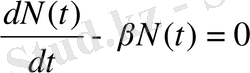 2. Қайсібір қоршаған ортада бөлінумен көбиетін біржасушала организмдер бар болсын дейік. Уақыт бірлігінде әрбір N жасуша β N бөлінеді. β - көбею коэффиценті деп аталады. t уақыт аралығындағы жалпы организм санын βN(t) Δt арқылы белгілейік. Нәтижесінде келесі теңдеуді аламыз: