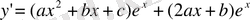 б) P(x) =(b 0 x m +b 1 x m-1 +…+b m ) e ax алайық. Шешімін m дәрежесін e ax дәрежеге шығарылатын туынды арқылы іздейміз. Коэффиценттерін жоғарыдағы мысалдағыдай табамыз. Мысалы, келесі теңдеудің жергілікті шешімін табу керек: